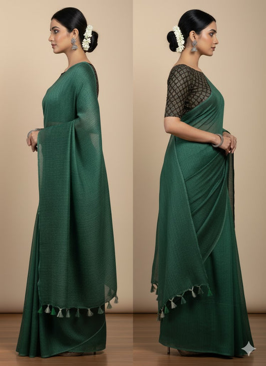 Exclusive Green Katan Ghicha Saree with Pure Ikkat Silk Blouse KG02