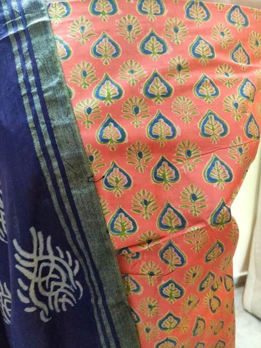 Exclusive Blue Block Printed soft Kota Cotton Kurta Dupatta Fabric Set KOTASS08