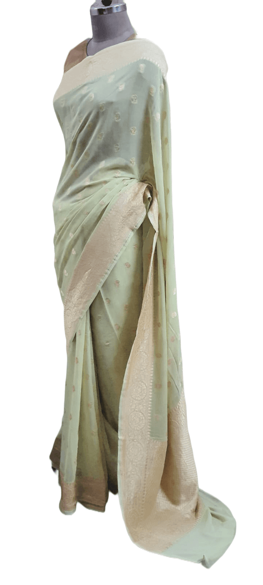 Exclusive Lime Green Pure Khaddi Georgette Banarasi Saree