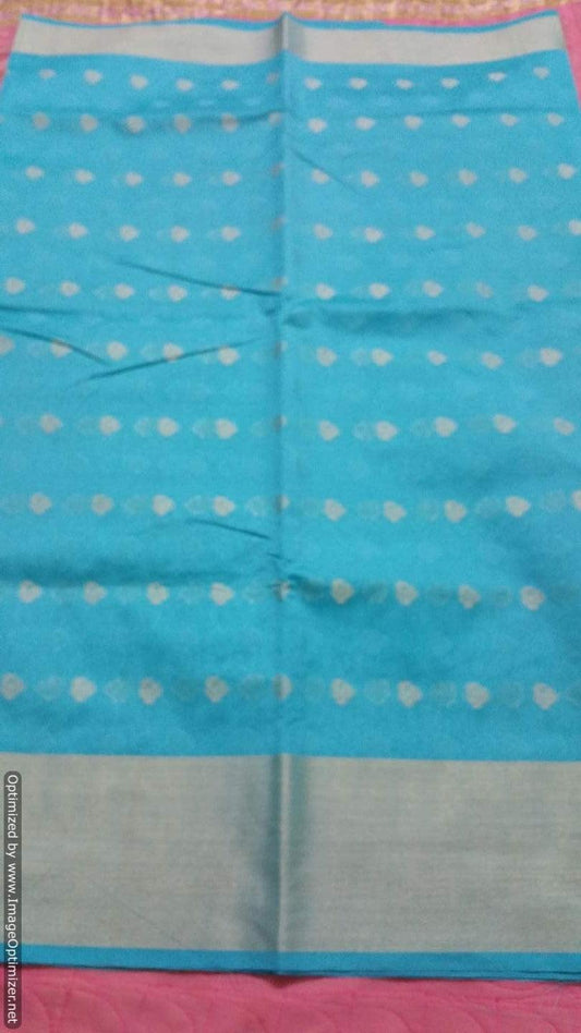 Firozi Blue Banarasi Cotton Silk Saree with Running Blouse Fabric BS30