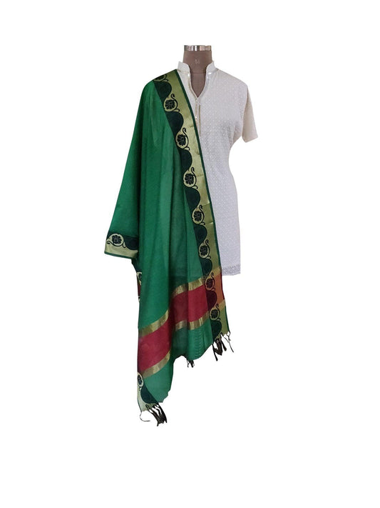 Green Banarasi Cotton Silk Dupatta BCPD03