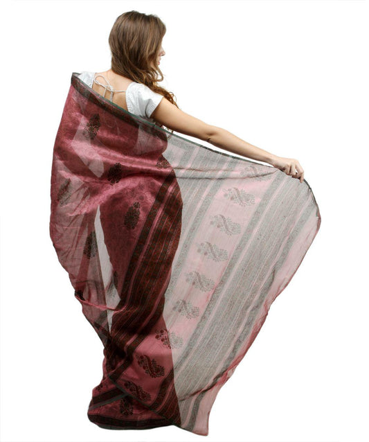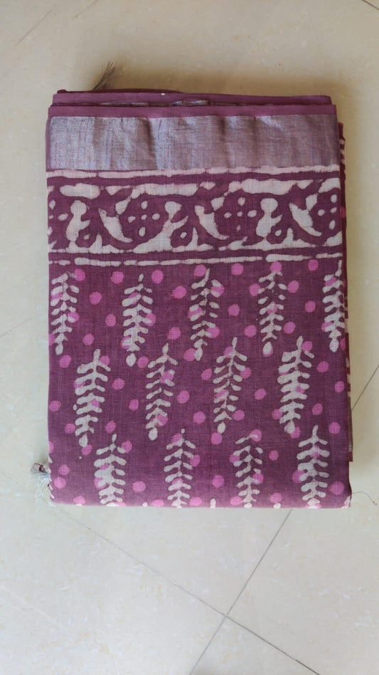 Onion Pink Linen Cotton Hand Block Printed Saree RF02