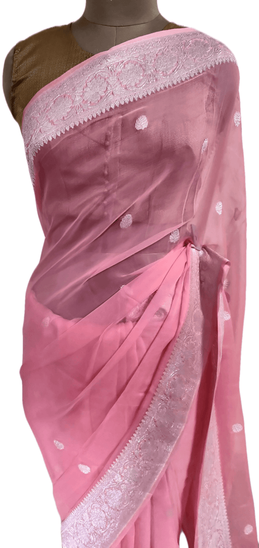 Pink Banarasi Pure Khaddi Chiffon Saree MK01