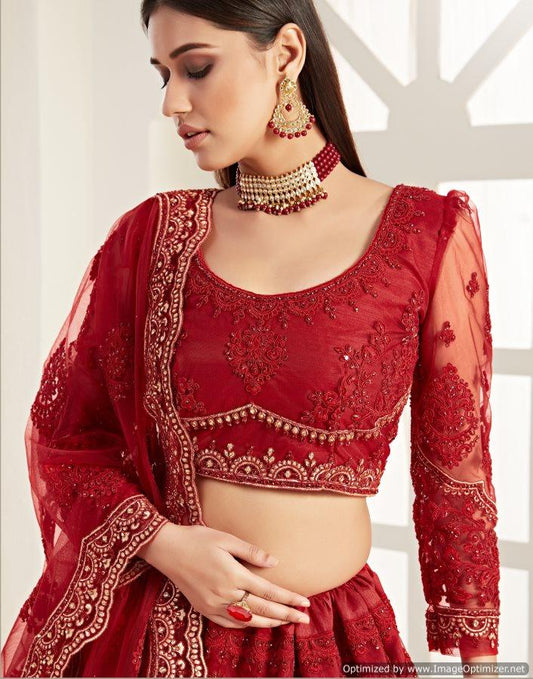 Semi Stitched Reddish Maroon Heavy Net Bridal Partywear Lehenga Choli ALI1008