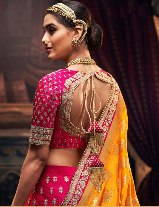 Semi Stitched Magenta Handloom Silk Bridal Partywear Lehenga Choli NAK5161
