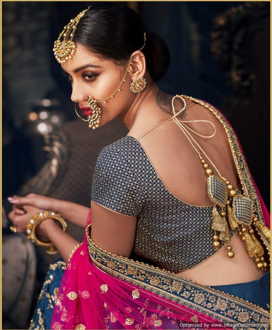 Semi Stitched Peacock Blue Handloom Silk Bridal Partywear Lehenga Choli NAK5163