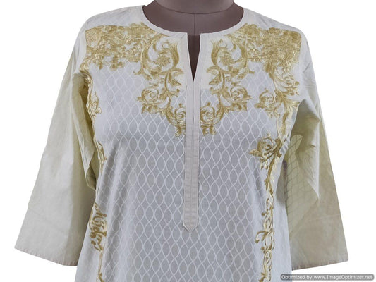 Semi Stitched Cream Pakistani Embroidered Kurti Kurta PK03