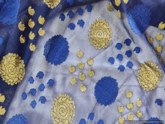Blue Gold Weave Jequard Georgette Fabric Pre Cut 6 Meters FAB172