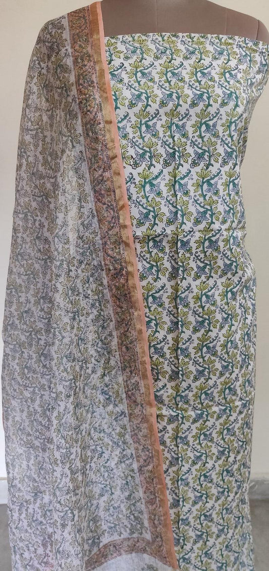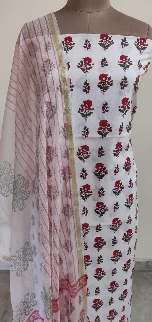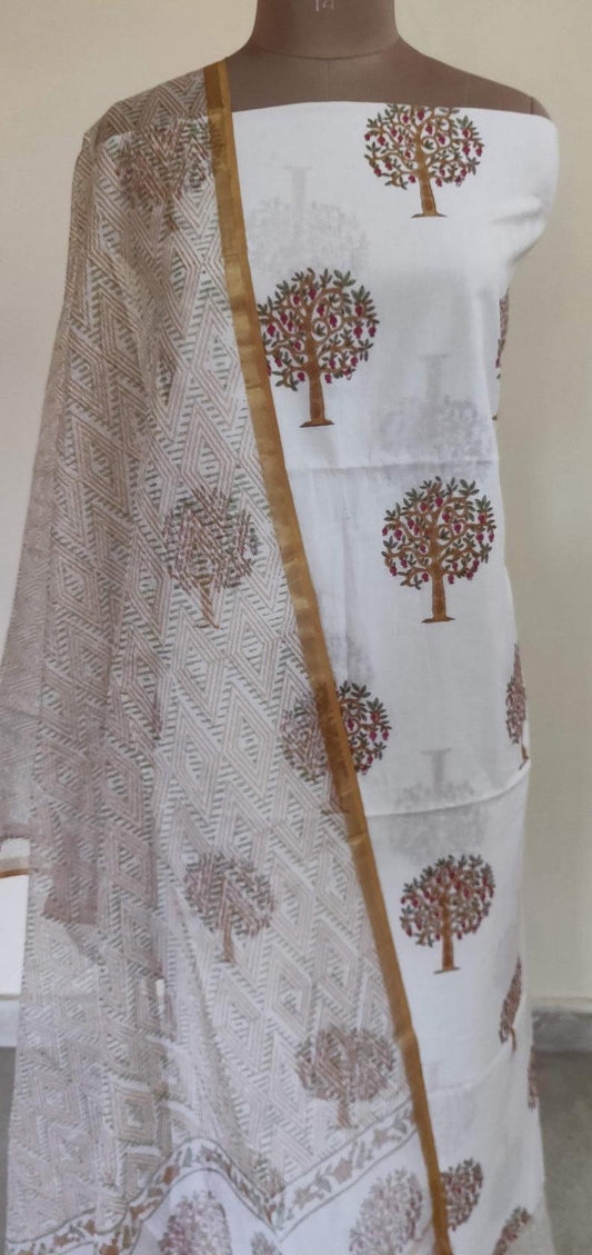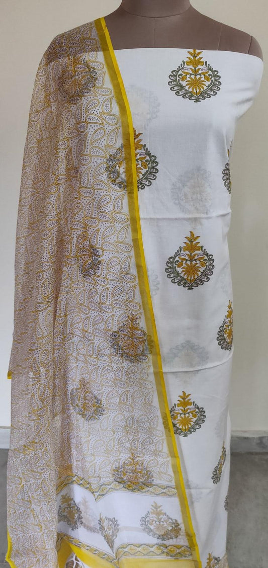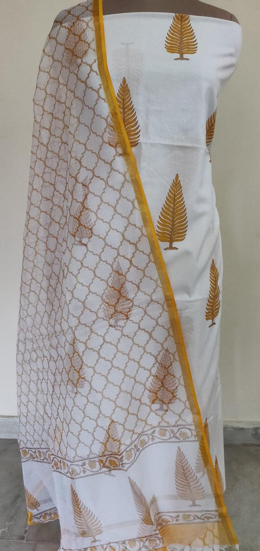 Off White Block Printed Suit with Kota Dupatta BPK22