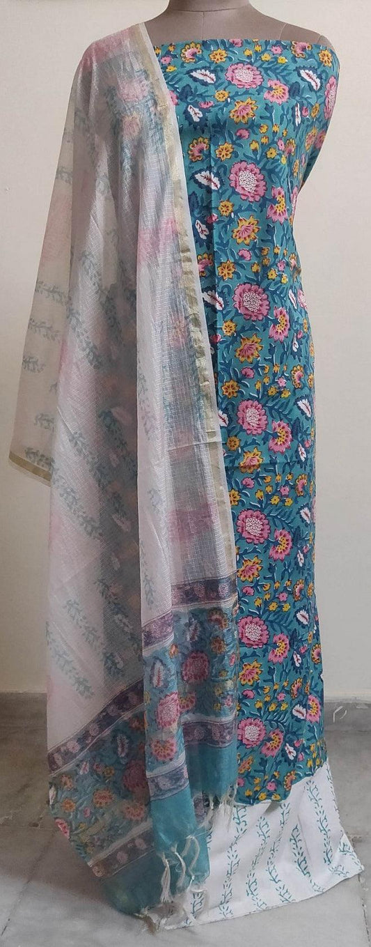 Turquoise Block Printed Suit with Kota Dupatta BPK30