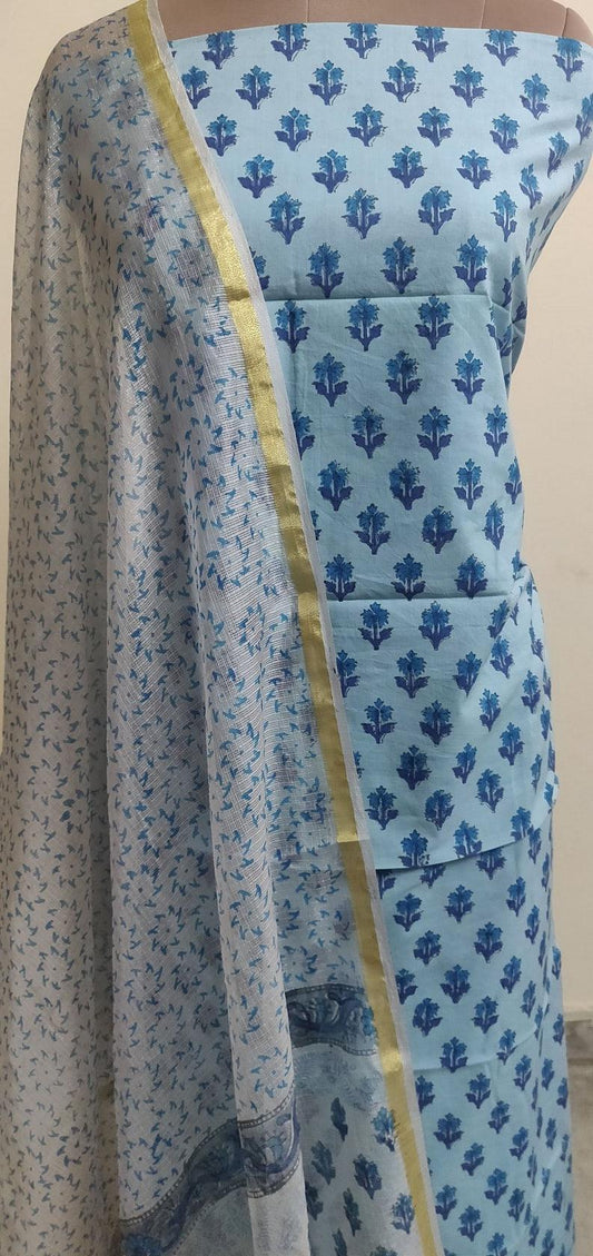 Sky Blue Block Printed Suit with Kota Dupatta BPK31