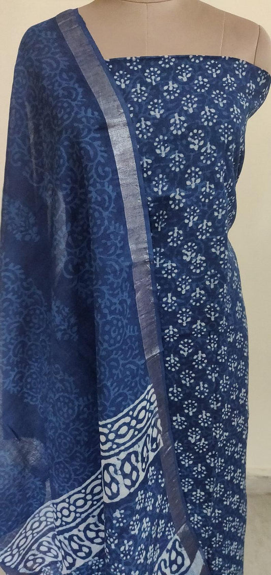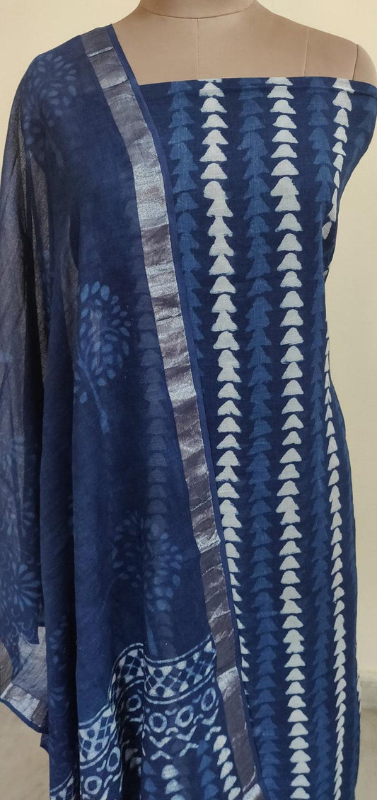 Indigo Blue Block Printed Linen Cotton Suit BPL01
