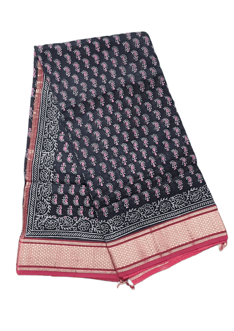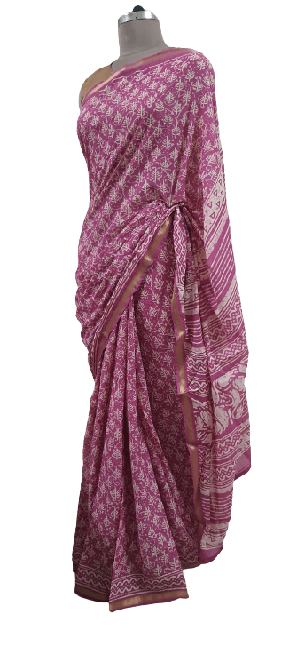 Pink screen Printed Chanderi Cotton saree CHBP01