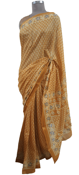 Yellow screen Printed Mulmul Cotton saree BPKO01
