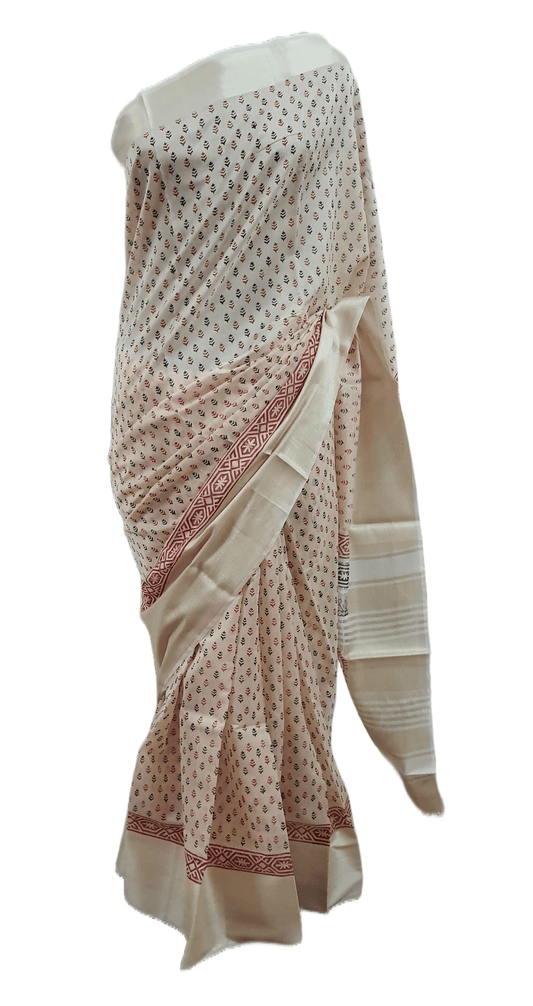 Striped Off White Hand Block Printed Modal Silk Saree NAM03
