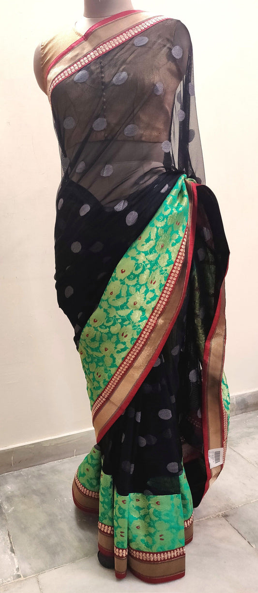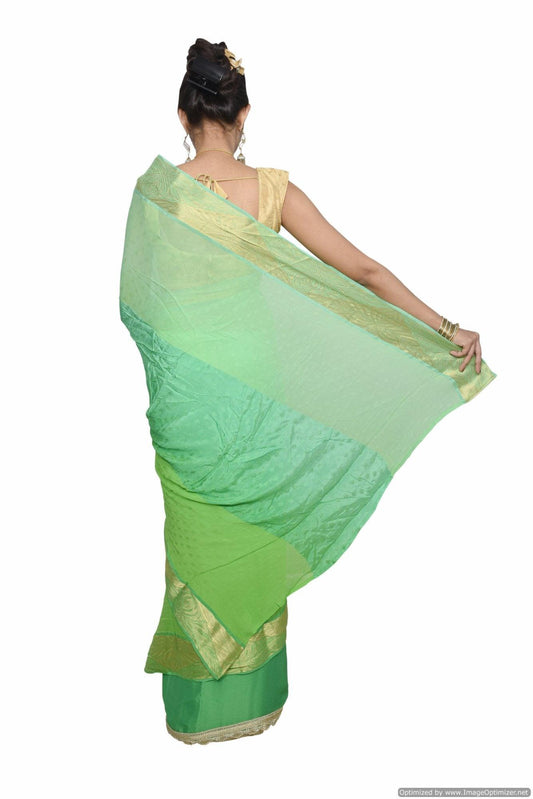 Designer Zari Border Green Silk Chiffon Saree SP06
