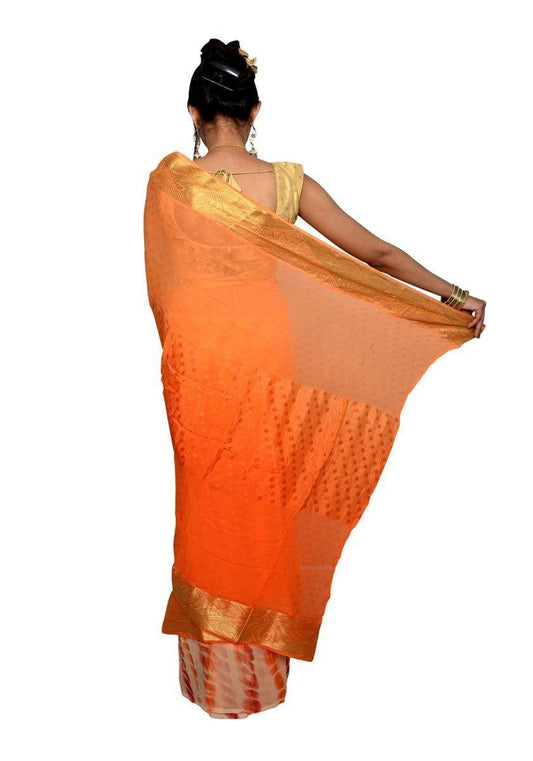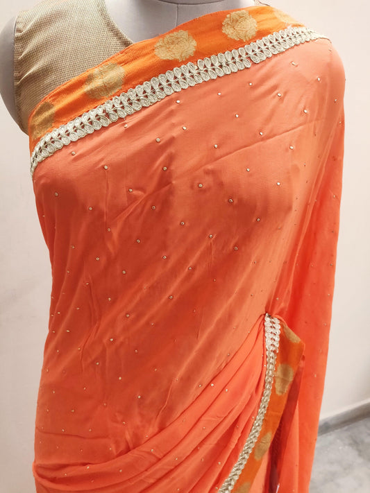 Designer Orange Silk Chiffon Zari Border Saree SP08