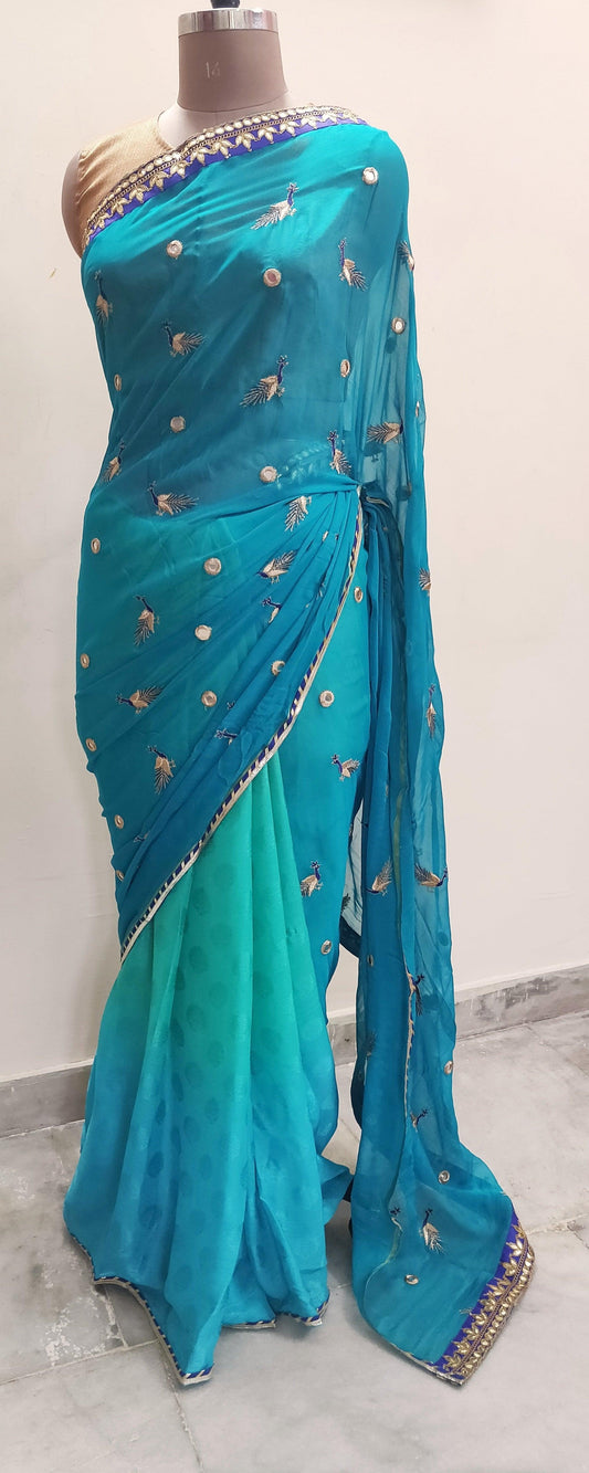Designer Turquoise Peacock Motif Georgette Saree SP14