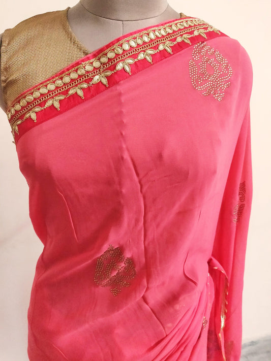 Designer Carrot Pink Pure Georgette Gotta Patti Border Saree SP13