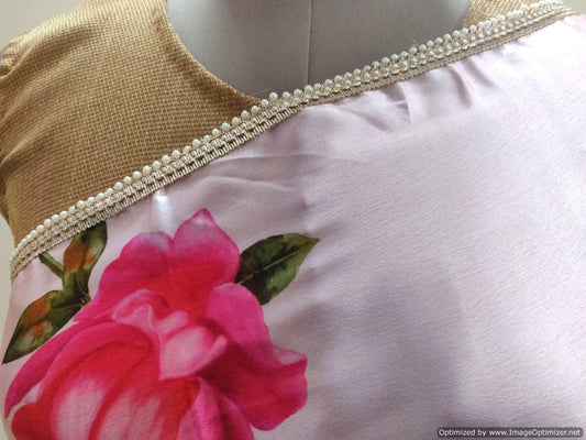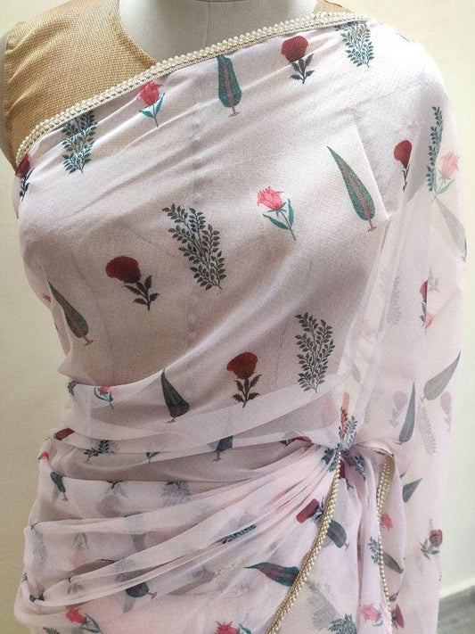 Designer Peachy Pink Organza Printed Pearl Lacer Saree SP26
