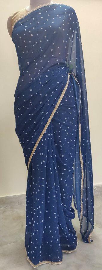 Designer Georgette Blue Polka Dot Printed Pearl Lacer Saree SP24