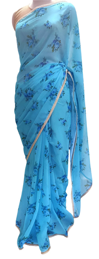Designer Georgette Blue Floral Printed Pearl Lacer Saree SP29