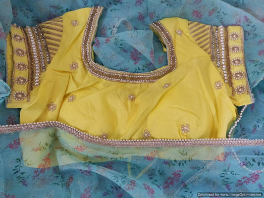 Yellow Khaddi Jequard Georgette Saree with Brocade Blouse Fabric ACC98