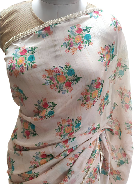 Designer Peach Organza Printed Pearl Lacer Saree SP27
