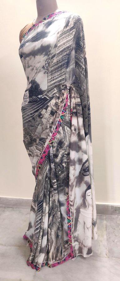 Designer Digital Printed Pure Crepe Buddha Motif Saree SP33