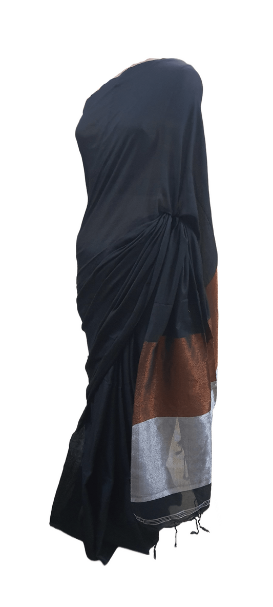 Black Handloom Cotton Saree with Pure Ikkat Silk Blouse BHR02
