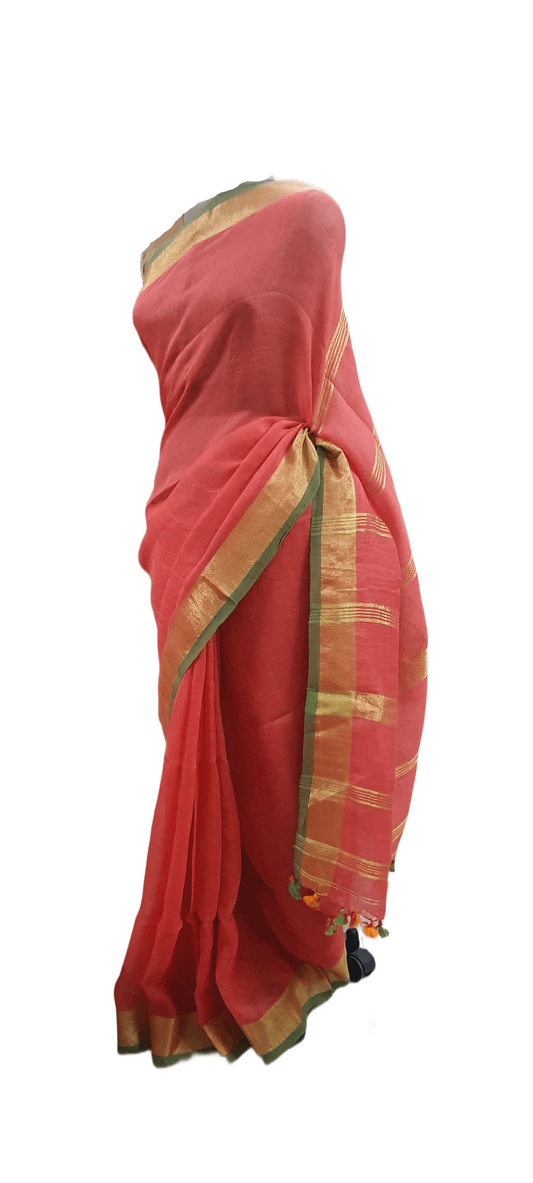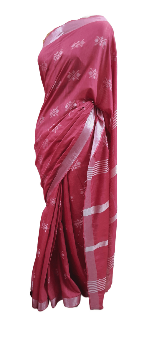 Pink Weaven Linen Cotton Saree with Pure Ikkat Cotton Blouse BHR07