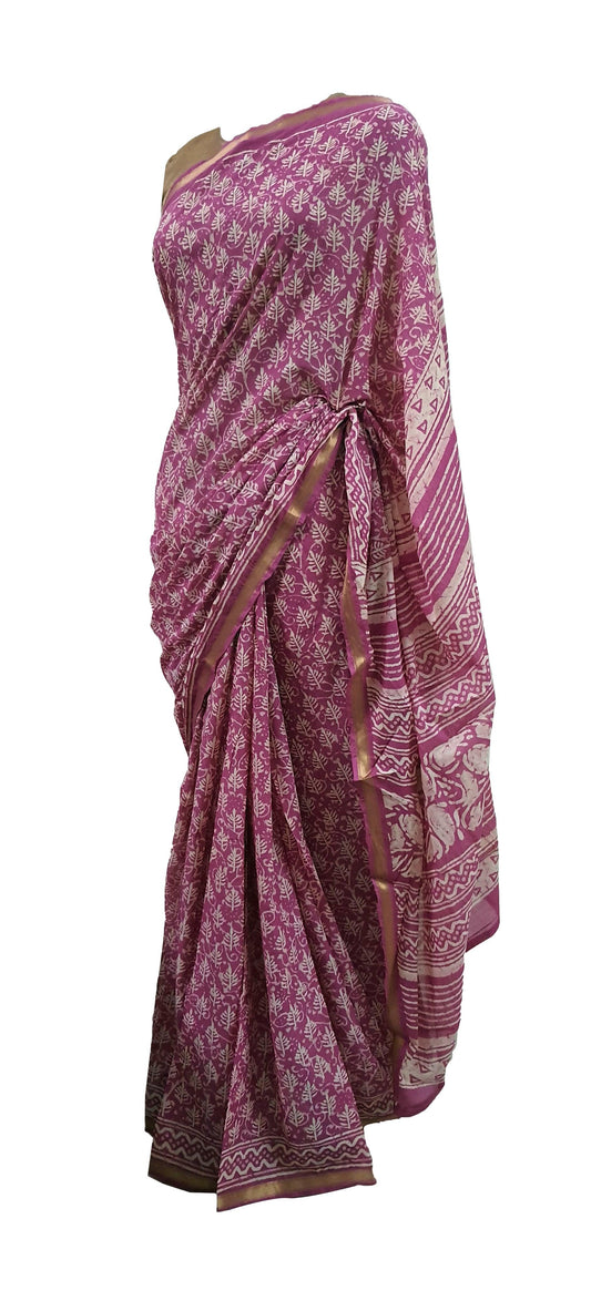 Pink screen Printed Chanderi Cotton saree CHBP01