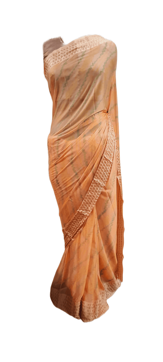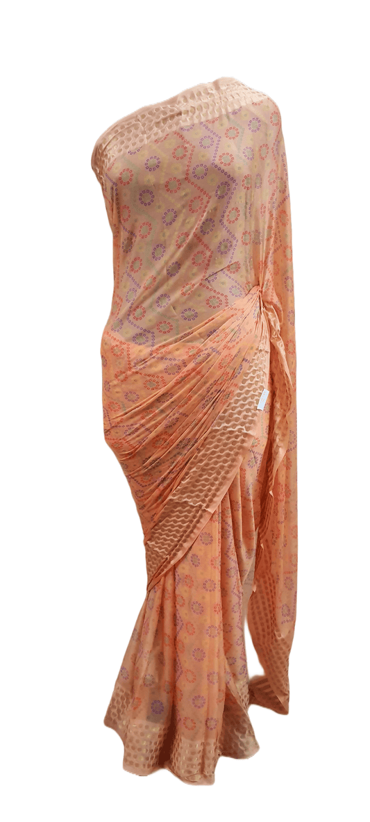 Peach Bandhej Bandhani Printed Chinon Chiffon saree SHVGS01