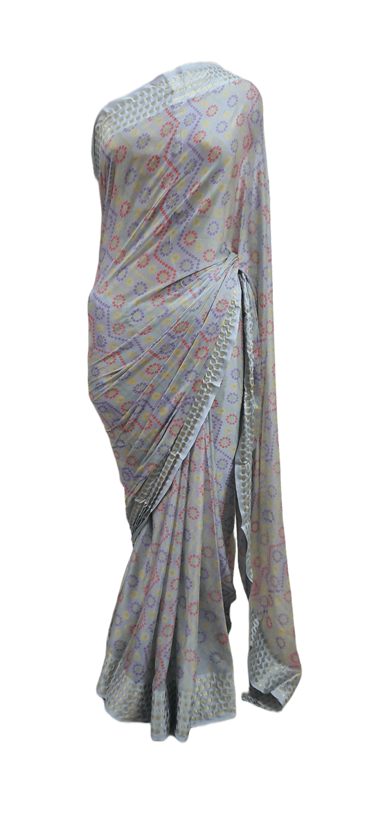 Gray Bandhej Bandhani Printed Chinon Chiffon saree SHVGS05
