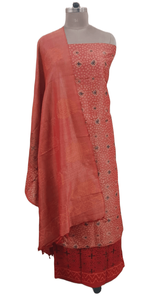 Rust Orange Khadi Cotton Silk Block Printed Suit