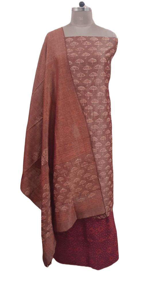 Light Brown Khadi Cotton Silk Block Printed Suit