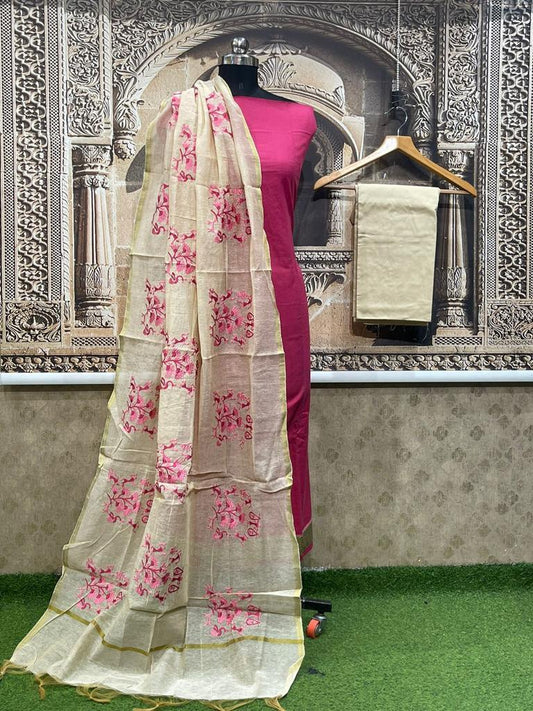 Black Maheshwari Cotton Silk Resham Weave Suit with Dupatta MH37