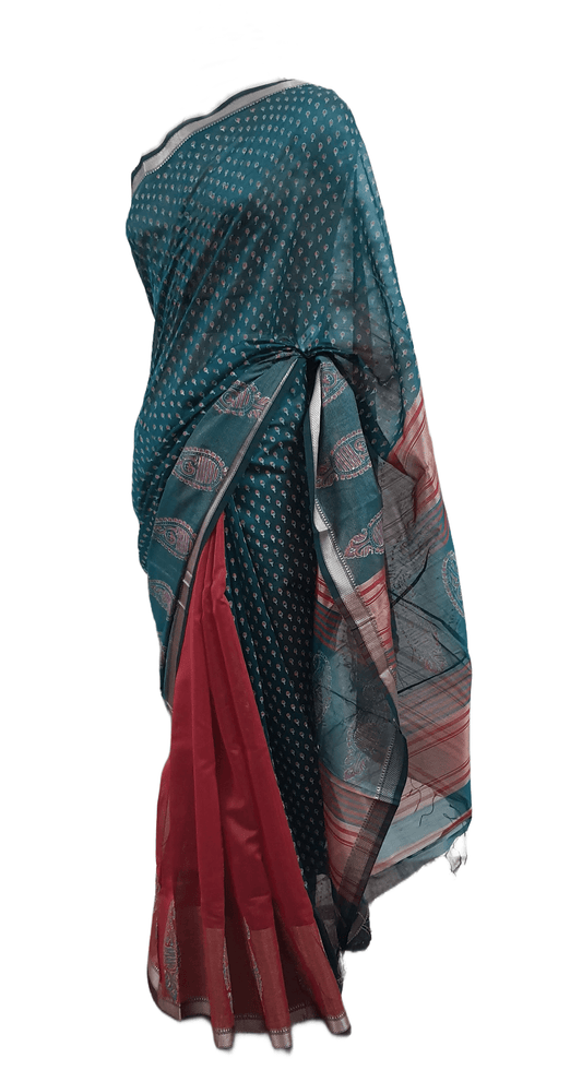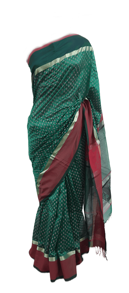 Pure Maheshwari Block Printed Cotton Silk Green Saree