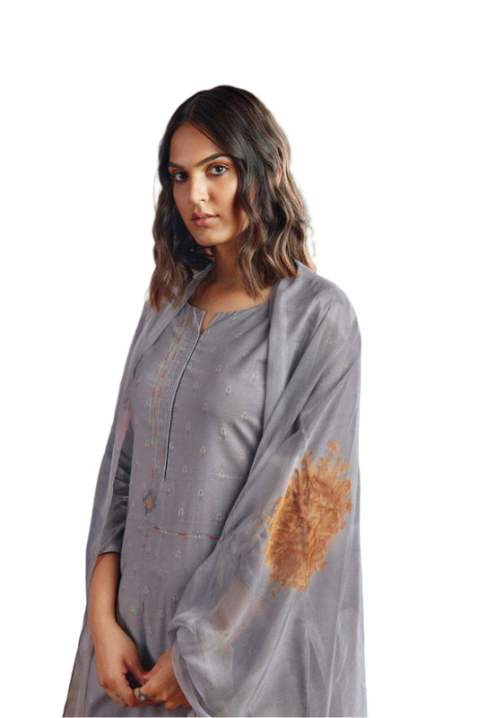 Grey Cotton Printed Light Embroidered Salwar Kameez Dress Material 403A