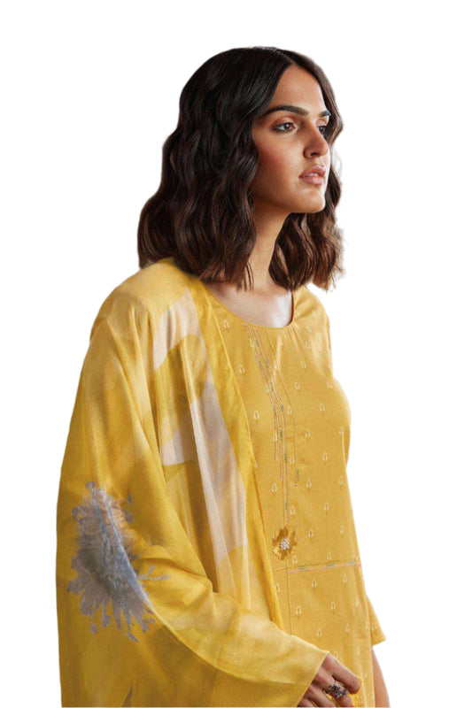 Yellow Cotton Printed Light Embroidered Salwar Kameez Dress Material 403C