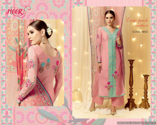 Heer Peach Satin Cotton Embroidered Dress Material SC5802