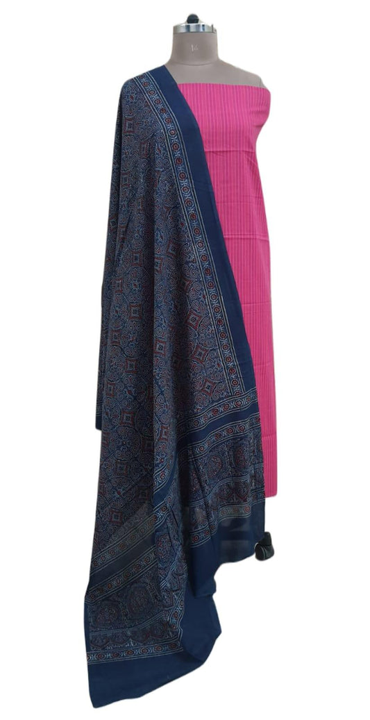Pink Cotton Printed Light Embroidered Salwar Kameez Dress Material 403D