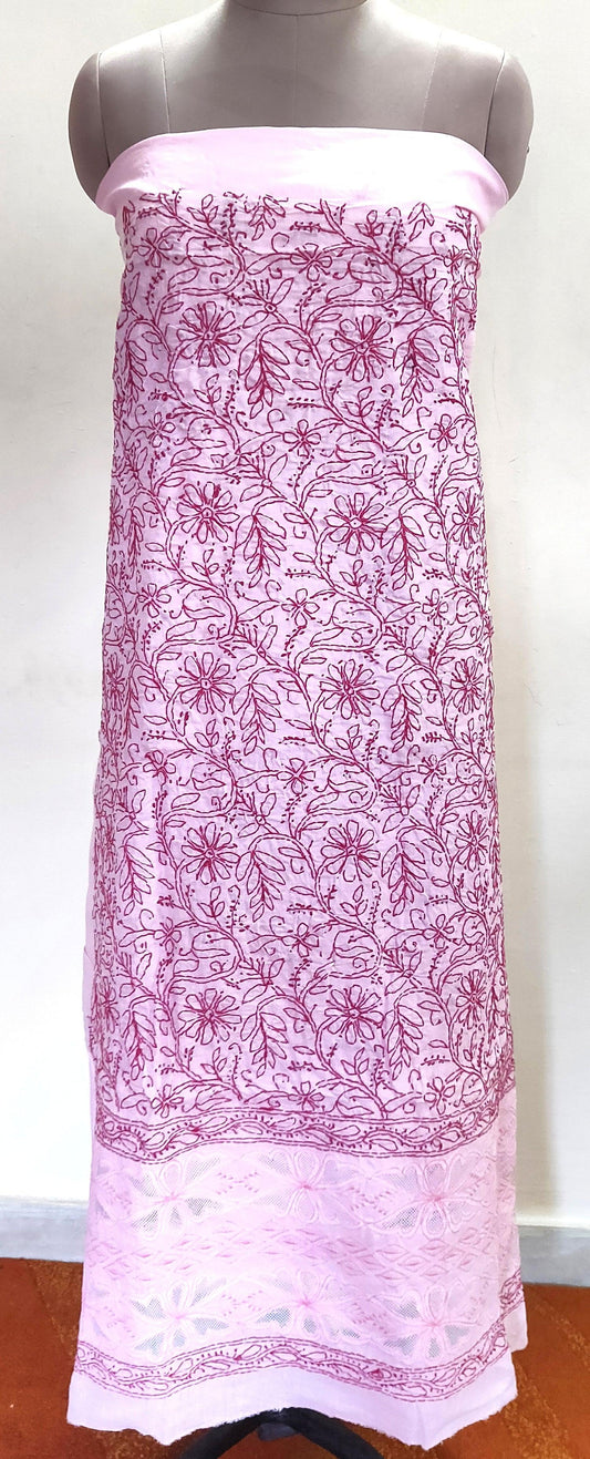 Designer Pink Cotton Chikankari Lakhnavi Embroidered Dress Material CHKS04