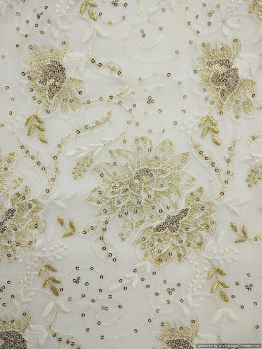 Georgette Off White Zari Sequin Fabric Pre Cut 3 Meter FAB032