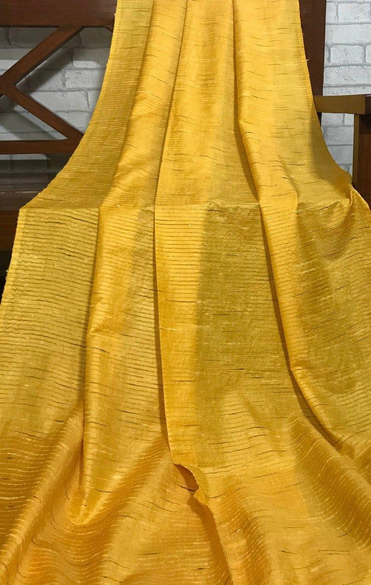 Exclusive Yellow Katan Ghicha Saree with Pure Ikkat Silk Blouse KG01