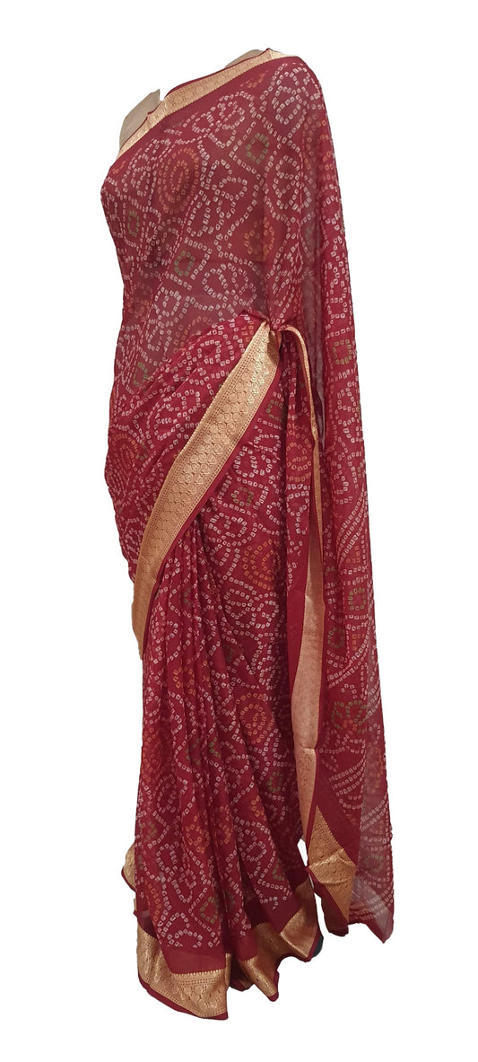 Beautiful Maroon Printed Chiffon Bandhej Bandhani Saree