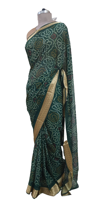 Beautiful Green Printed Chiffon Bandhej Bandhani Saree