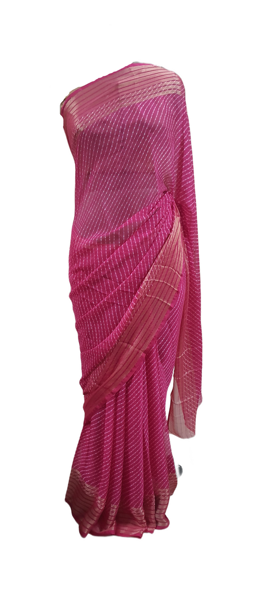 Pink Jaipuri Handcrafted Modal Gajji Bandhani Saree with Lagdi Patta Authentic Bandhej BANL03