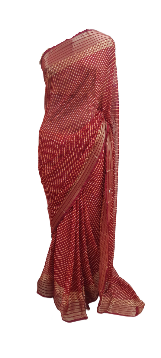 Red Jaipuri Handcrafted Modal Gajji Bandhani Saree with Lagdi Patta Authentic Bandhej BANL04