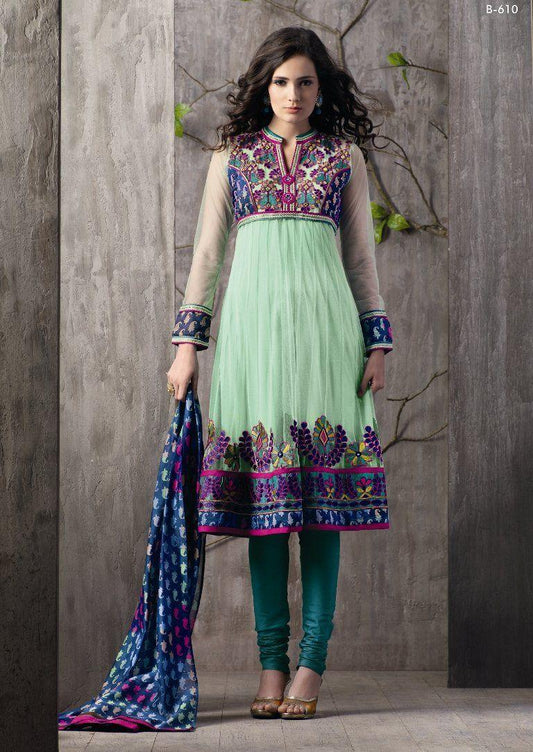 Light Green Embroidered Net Crepe Stitched Salwar kameez Churidar SC610